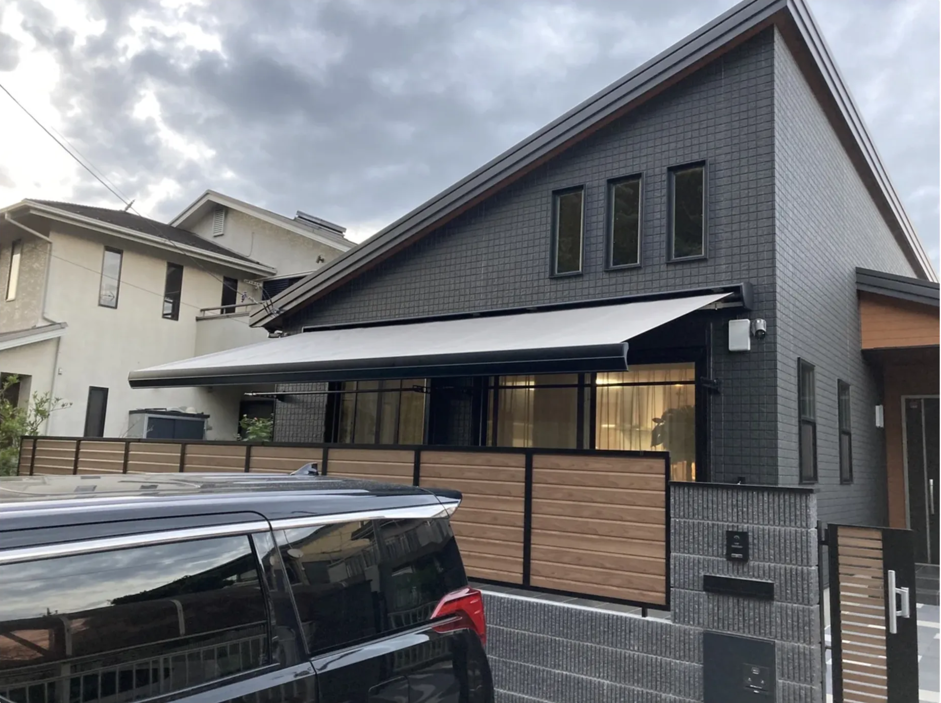既存のタイルデッキに電動式オーニングを設置し、庭での使い勝手を向上させました。プライバシーの確保、雨除け対策、室内の日焼け防止など、多くのメリットを提供。夏は日除け、冬は日光を取り込むことで、一年中快適に過ごせる空間を実現しました。スタイリッシュなデザインで家全体の美観もアップし、実用性とデザイン性を兼ね備えた今注目の活用事例です。