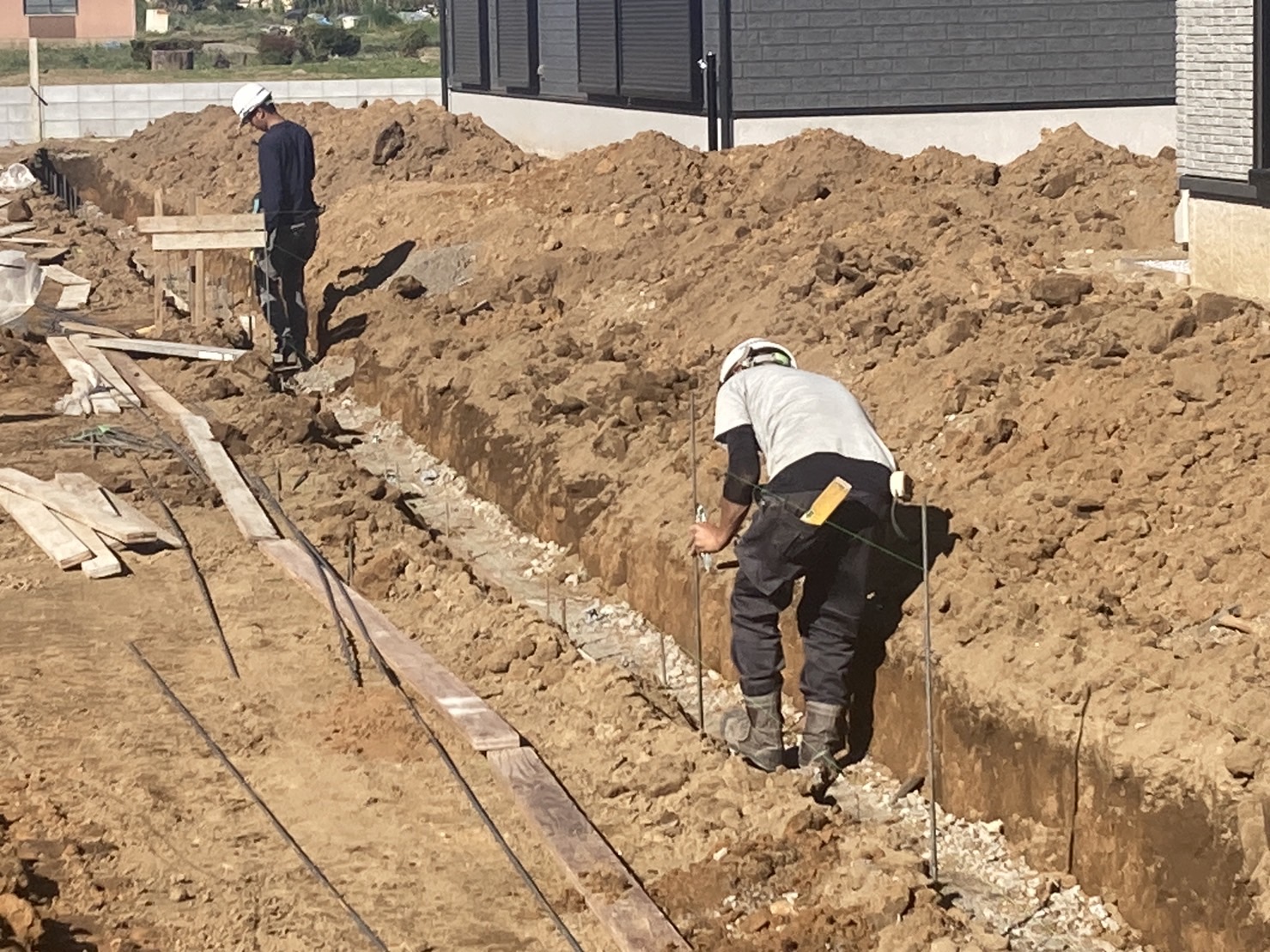敷地がとても広いので、ベース打設の長さもとても長くなりました。